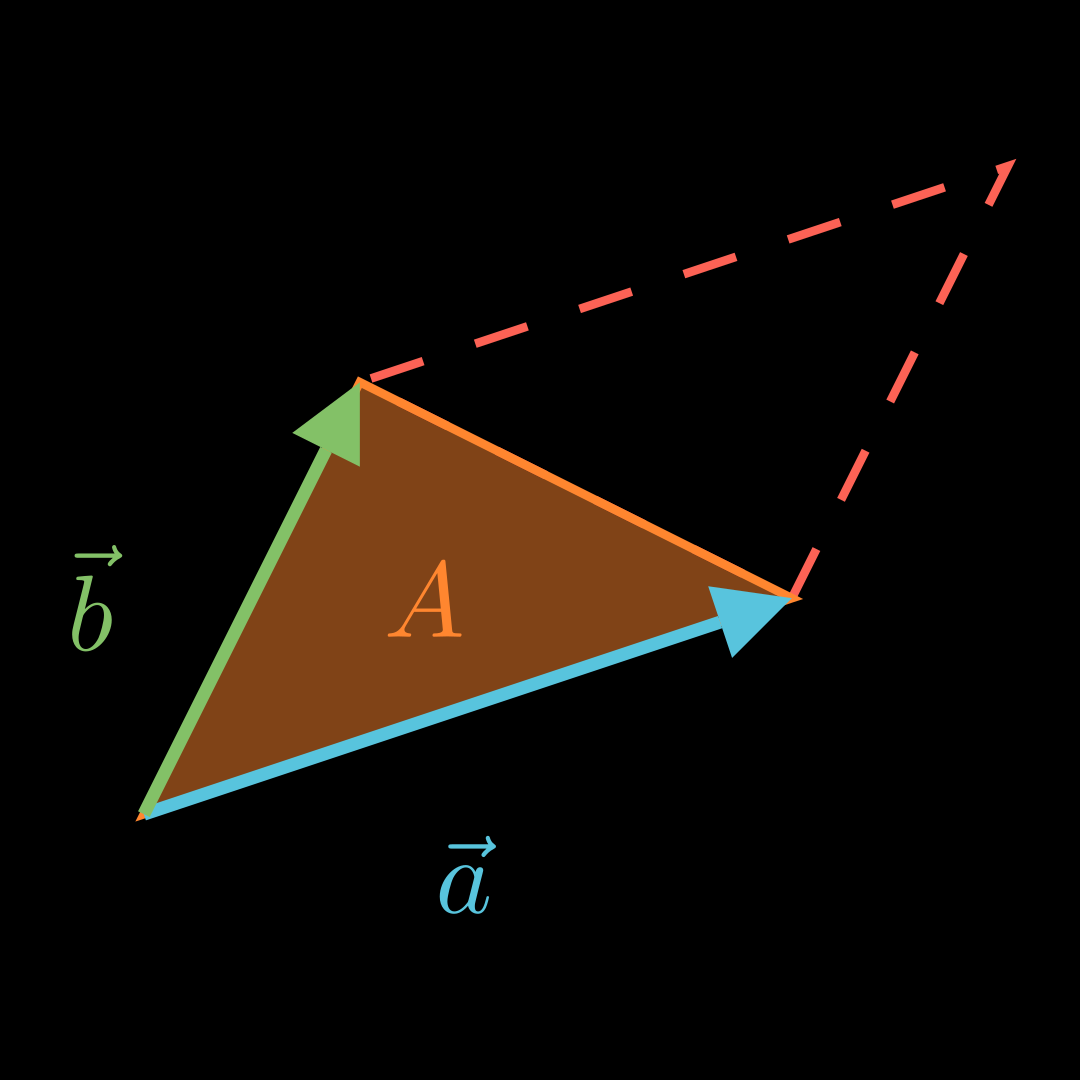 A = 1 2 ⋅ ∣ a ⃗ × b ⃗ ∣ A = \frac12 \cdot