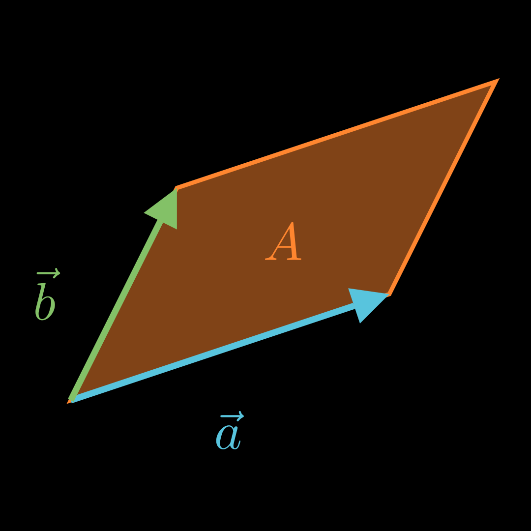 Für den Flächeninhalt A A A eines Parallelogramms, dass von den Vektoren a ⃗ \vec a a und b ⃗ \vec b b aufgespannt wird, gilt: