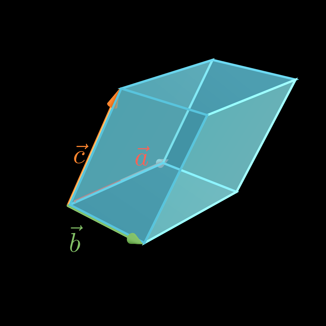 Für das Volumen V V V eines Spats, der von den Vektoren a ⃗ , b ⃗ \vec a, \vec b a , b und c ⃗ \vec c c aufgespannt wird, gilt:
