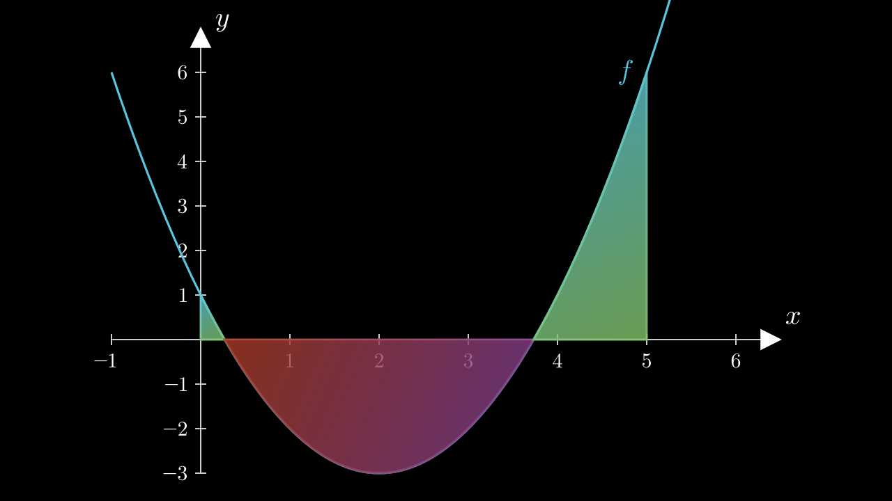 Der rote Bereich stellt den negativen orientierten Flächeninhalt dar, während die grüne Fläche den positiven orientierten Flächeninhalt repräsentiert.