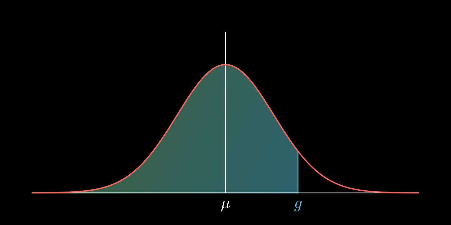 Der Fehler 1. Art ist, wenn man im Ablehnungsbereich landet, obwohl die Nullhypothese wahr ist.