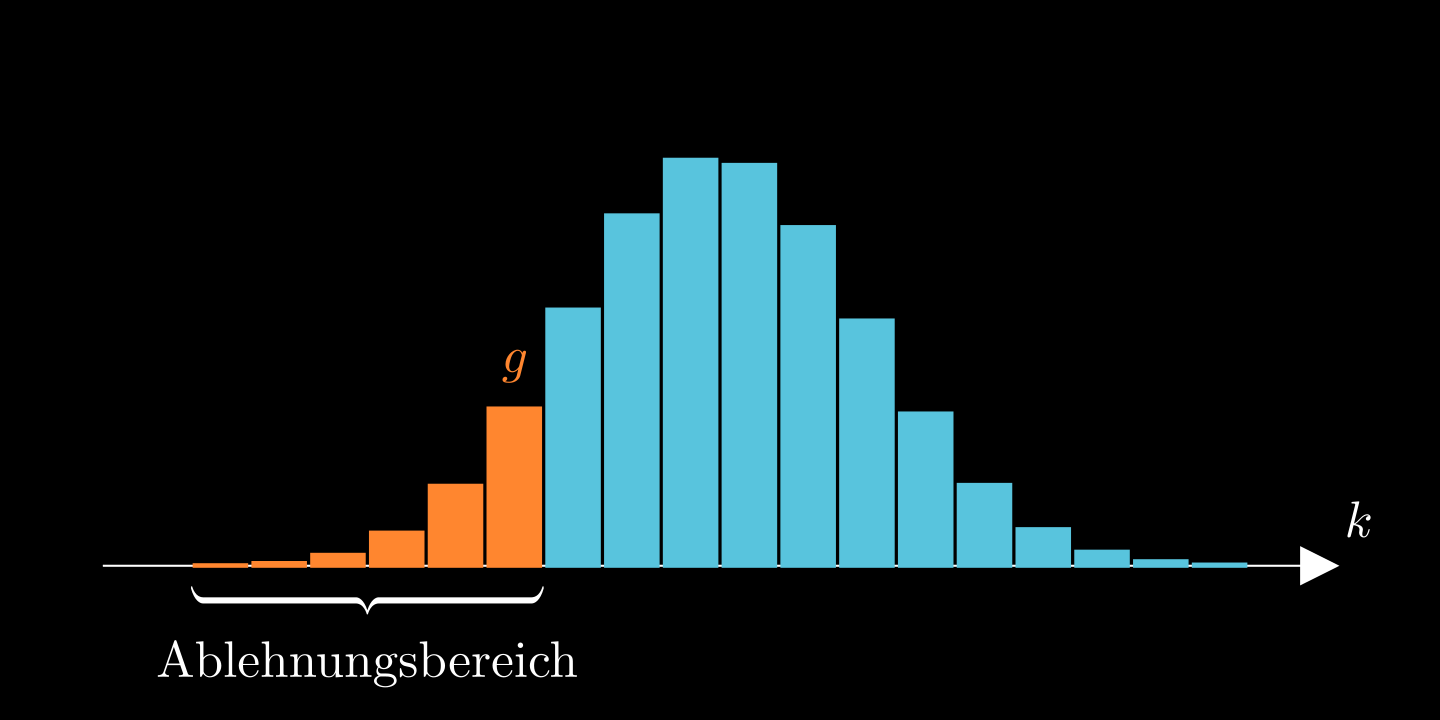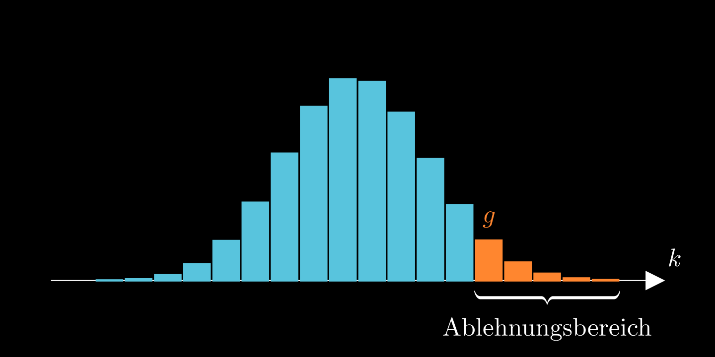 Wenn das Stichprobenergebnis im Ablehnungsbereich liegt, wird verworfen. Ansonsten wird angenommen.